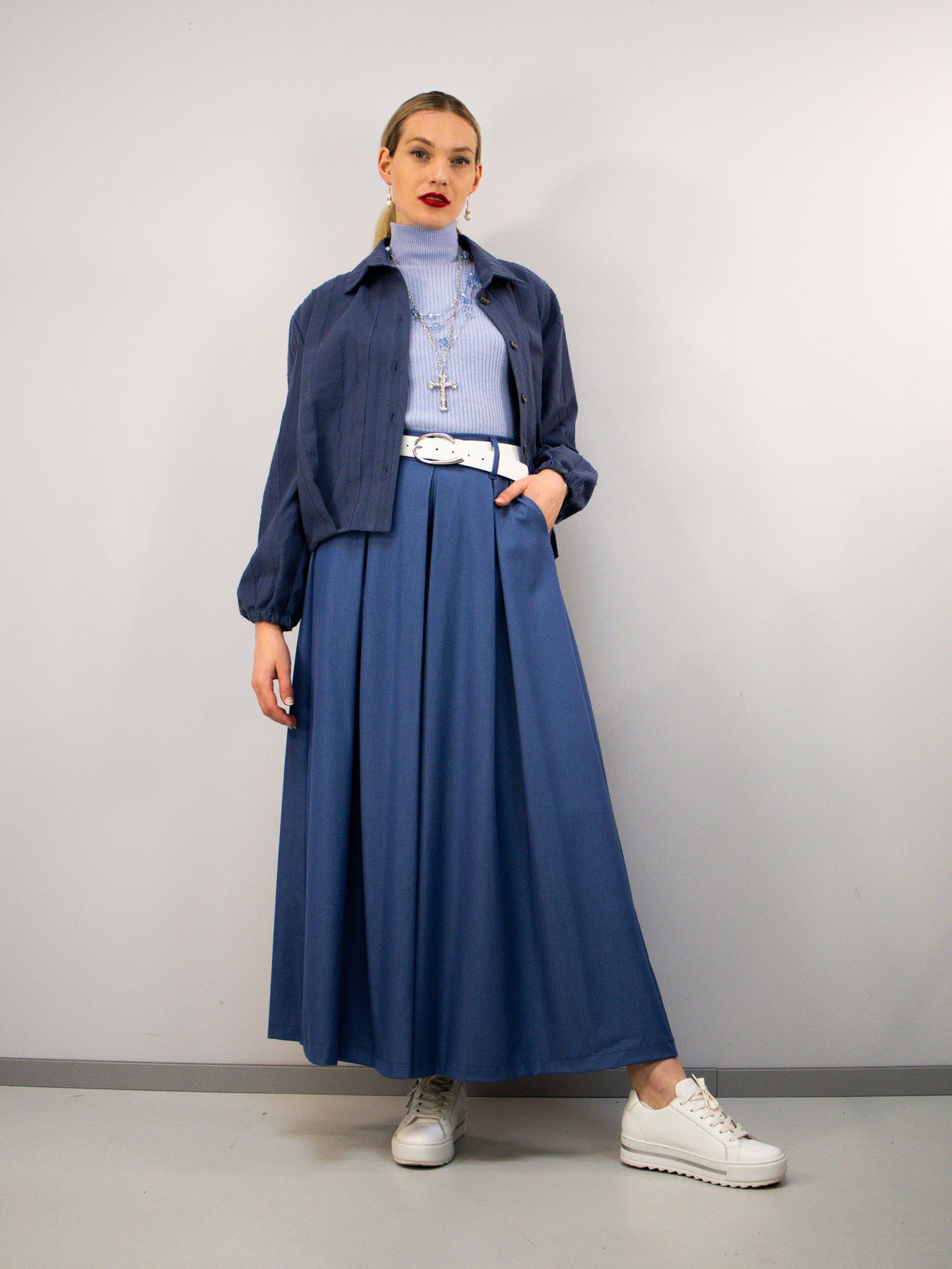 Die Bluse lässt sich vorne knöpfen und ist locker geschnitten – ideal zum Layern über Shirts, Rollkragen oder Kleider. Die weich fallenden Ärmel mit leichtem Volumen unterstreichen den entspannten, aber dennoch stilvollen Look. Ein vielseitiges Lieblingsstück für Alltag und besondere Anlässe.