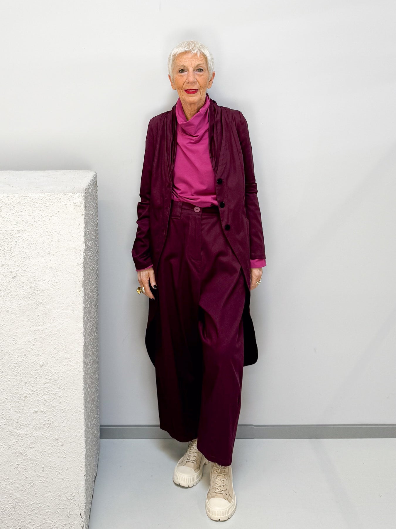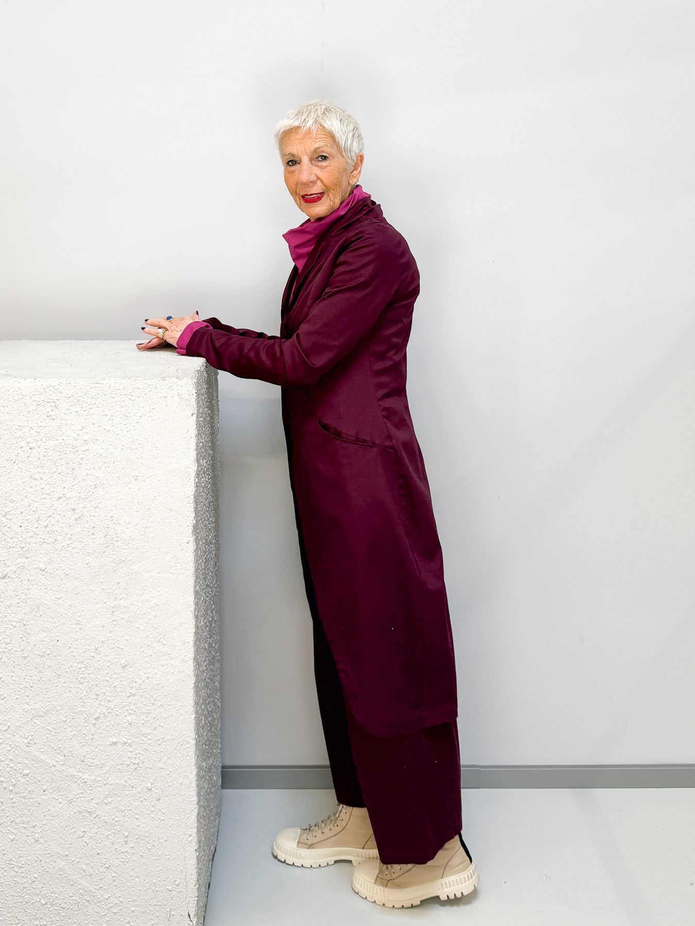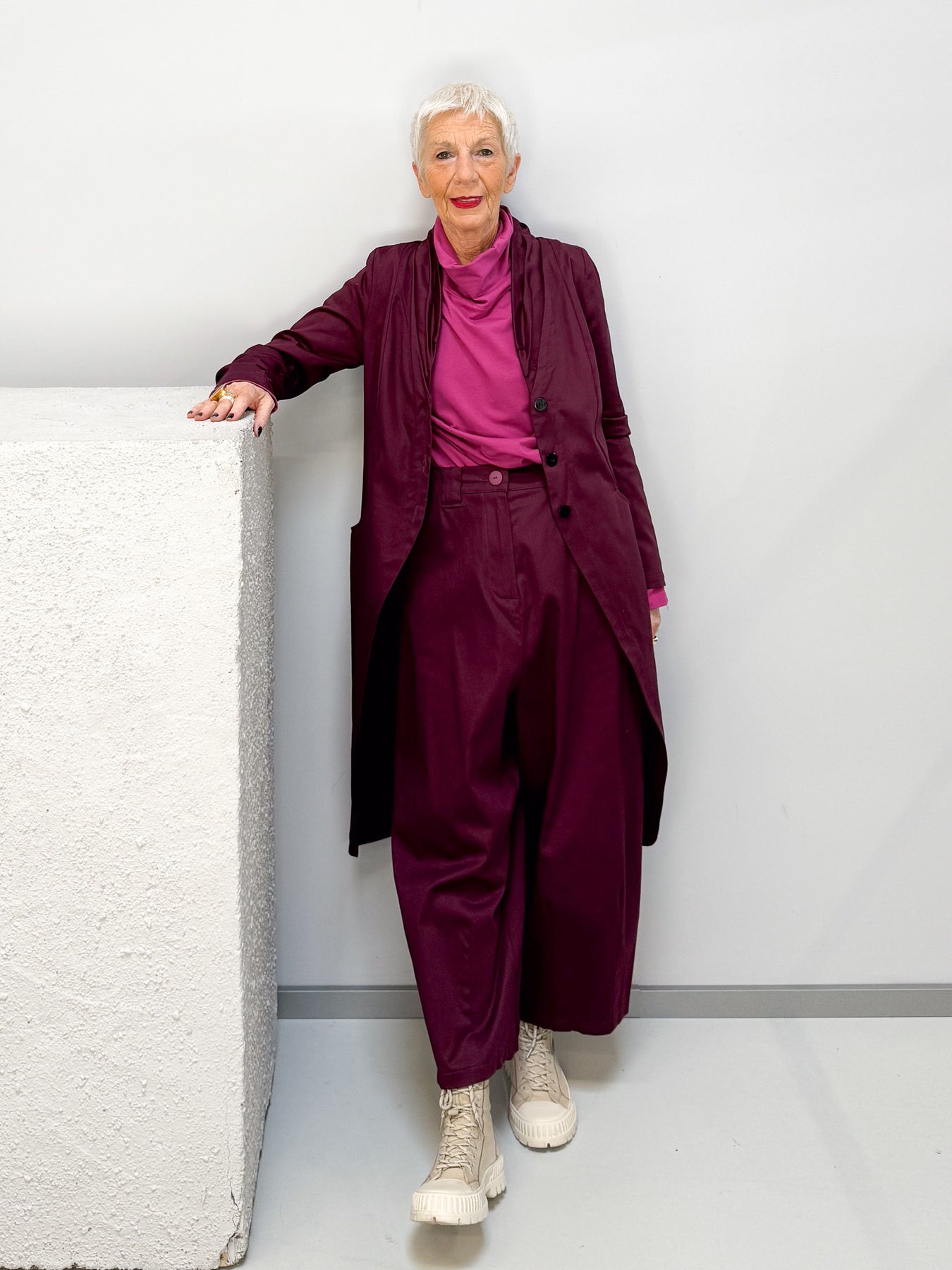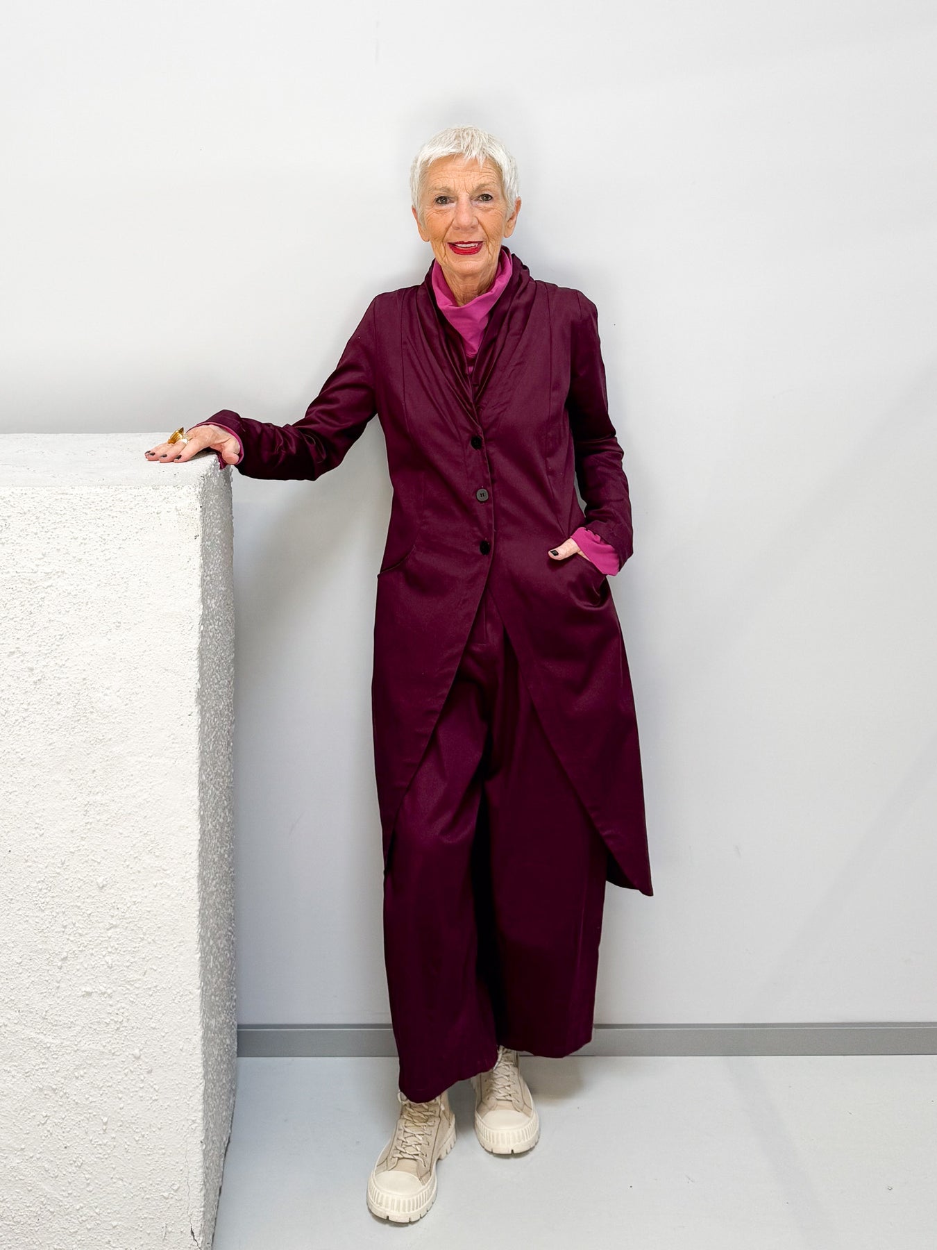 Unser lässig geschnittene Frackmantel aus Baumwolle in der warmen Auberginenfarbe ist der Inbegriff von bequemem Chic. Sein lockeres Design verleiht Ihnen eine entspannte Eleganz, während die Farbe für einen Hauch von Raffinesse sorgt. Die Seitentaschen bieten Ihnen eine praktische Ergänzung.
