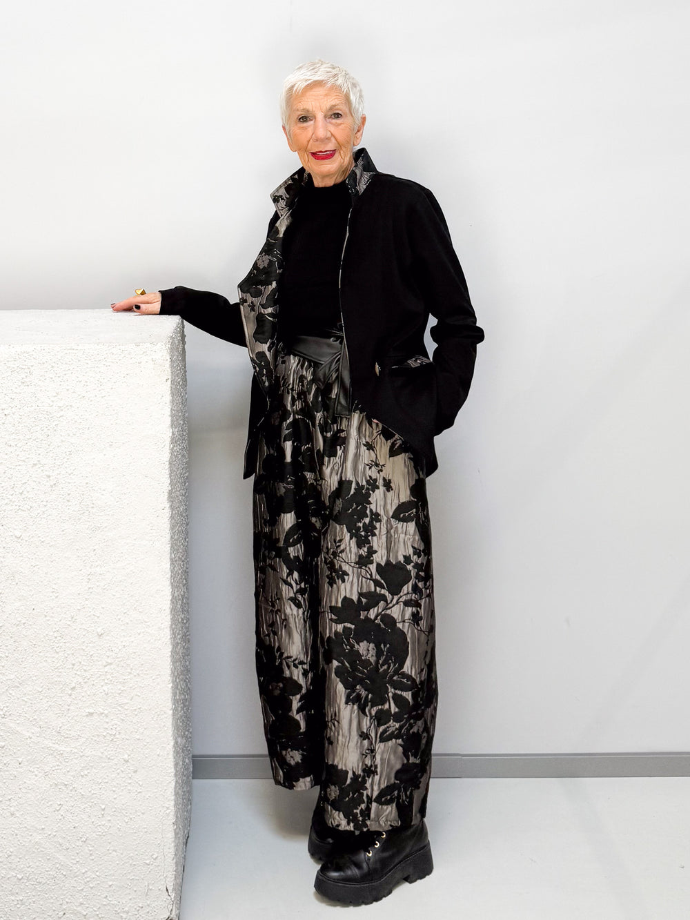Kurzjacke mit floralen Akzenten
